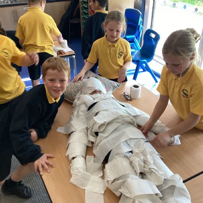 Year 4 had things ‘all wrapped up’ when we mummified our class mates! We had a great time learning about this fascinating process as part of our history topic.