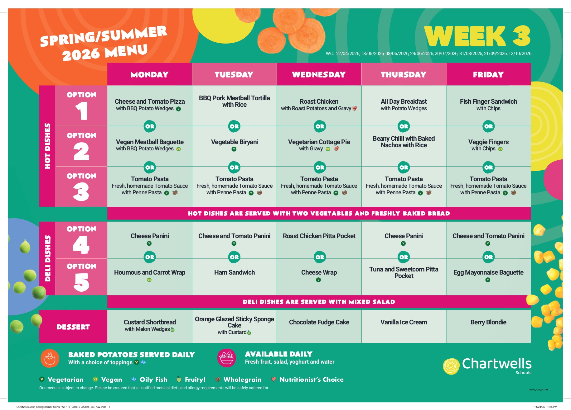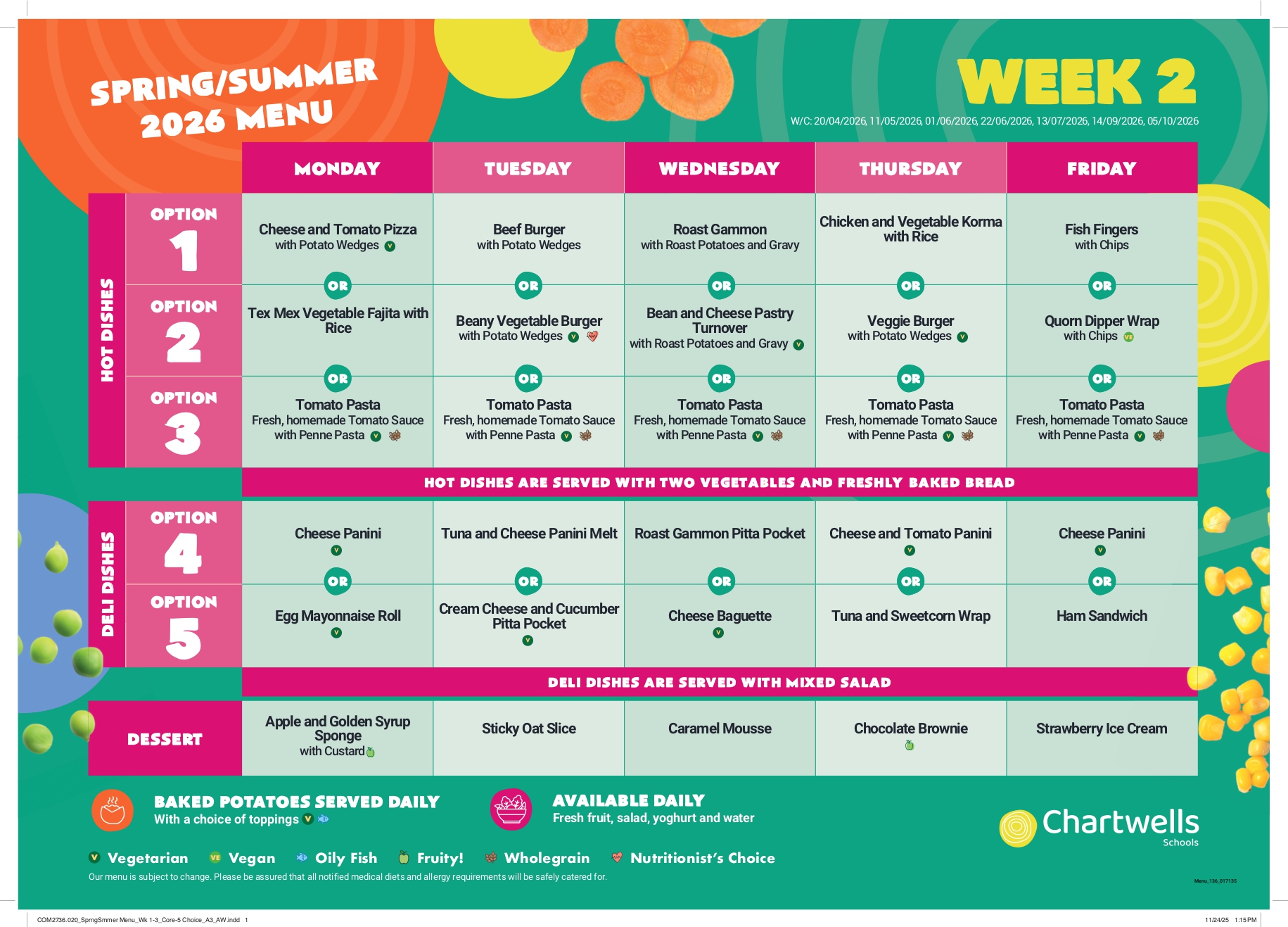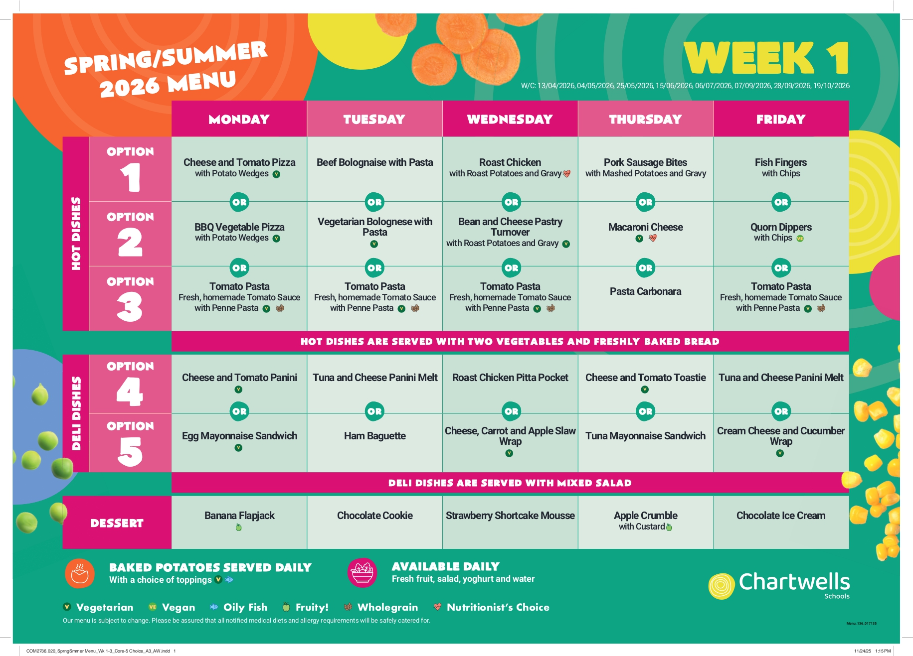 With effect from the Summer Term, Monday 13th April, we will be switching to a new catering provider, Chartwells. You can learn more about Chartwells here.